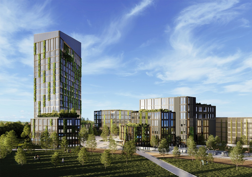 Neubau eines 20-geschossigen Hochhauses, eines 6-geschossigen Verwaltungsgebäudes, eines Parkhauses und ei ...